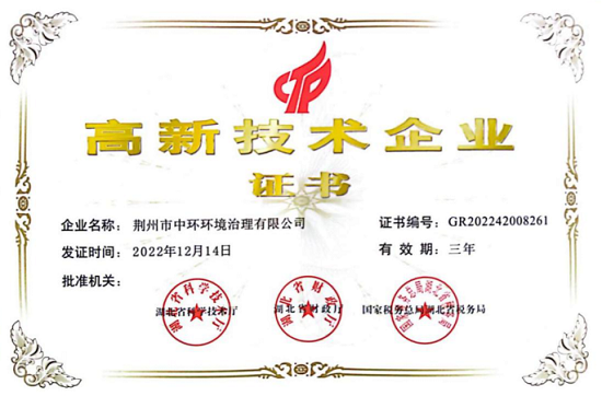 【能力提升年】中節能生態下屬荊州公司被評為高新技術企業
