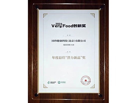 本次活動分為原料組及成品組兩個賽道,旨在通過評選,對食品行業中做出重大貢獻、取得巨大成就的上游原料、終端產品和科研創新成果等進行表彰。健康產業公司旗下國珍牌瑙洛清?配方油以特色的成分與配方、穩定的生產技術、豐富的感官體驗,在數百款創新產品中脫穎而出,榮獲2024年度最佳“潛力新品”獎。