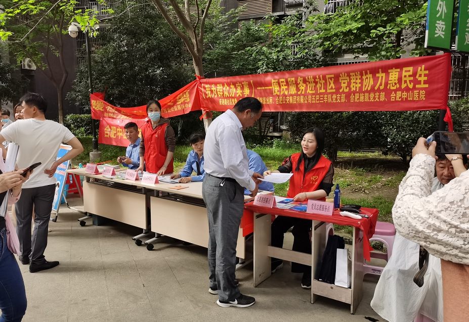 黨史學習教育開展以來,重慶公司各級黨組織堅持學黨史,見行動,辦實事,持續開展為民便民服務實踐活動。2021年5月7日,重慶公司所屬合肥施凱黨支部與荻港路社區、大通路派出所、合肥中山醫院黨建攜手開展“便民服務進社區黨群協力惠民生 我為群眾辦實事”活動。 各位黨員積極為社區居民們提供創業政策宣傳、居民養老保險宣傳、家庭安全防范宣傳、普法宣傳、健康檢查和咨詢、義剪、垃圾分類知識普及,同時認真傾聽并盡力幫助解決群眾的身邊事、煩心事。