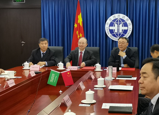 在阿拉伯語中,“沙特”是“幸福”的意思,“阿拉伯”則指“沙漠”,“沙特阿拉伯”意為“幸福的沙漠”。中國地礦人在這片“幸福的沙漠”中堅守、耕耘,用辛勤的汗水滋育出了茁壯秀美的“沙漠之花”。 2020年10月18日,中國地質調查局、中國地礦與沙特地質調查局地球化學勘查合作授標儀式在線舉行。中國地質調查局局長鐘自然與沙特工礦大臣、投資大臣、交通大臣等出席,中國地礦董事長宋永祺出席并在授標書上簽字。