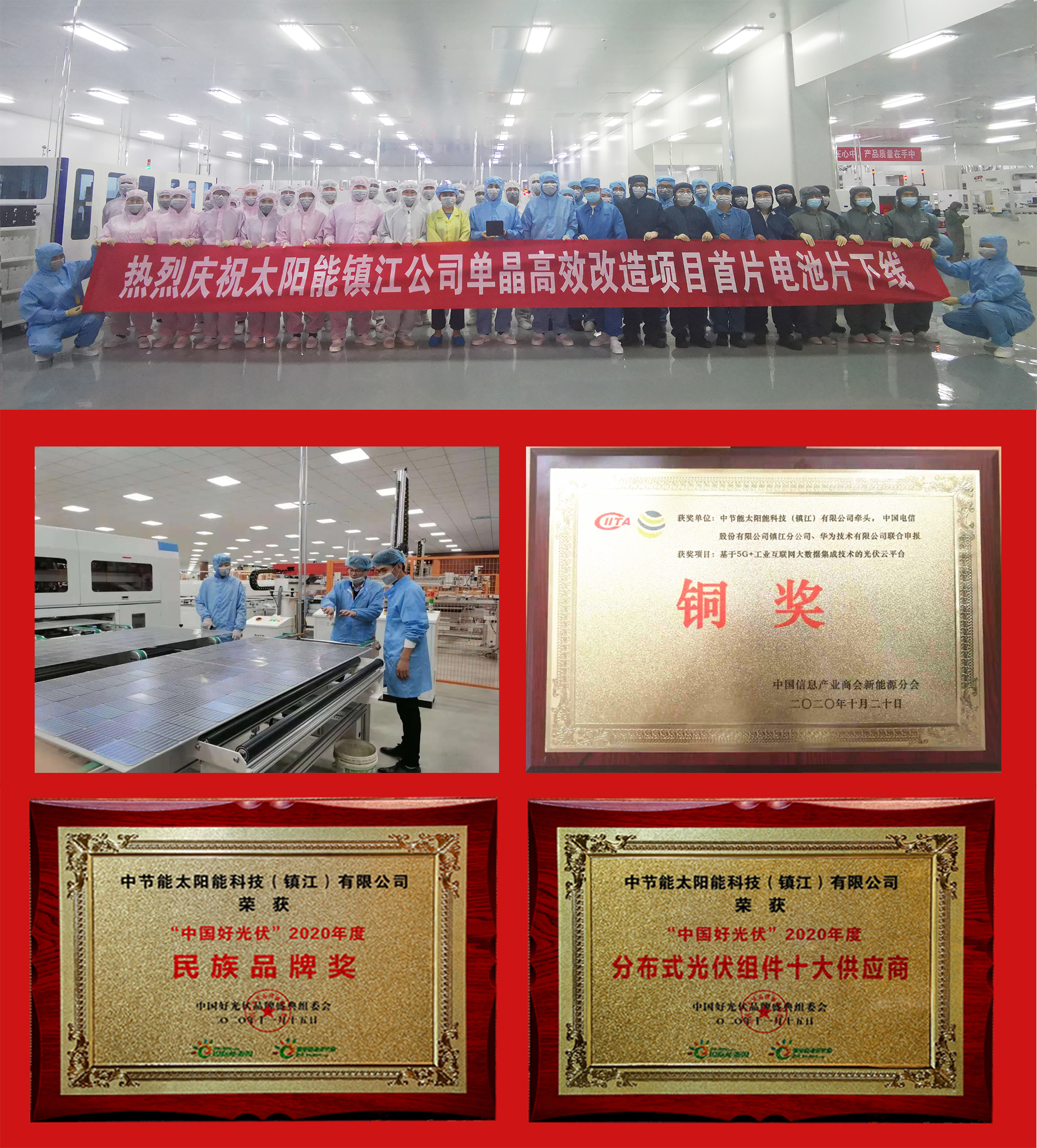 太陽能鎮江公司黨總支全面開啟“保質量、促生產,奮戰70天”專項提升行動,積極推進混改和擴產項目,電池一車間技改后已全面量產;句容基地夜班首次突破單線1000塊,提前完成達產目標。11月15日,憑借優秀的技術創新能力和品牌影響力,鎮江公司斬獲2020年度中國好光伏“民族品牌獎”“、分布式光伏組件十大供應商”兩項大獎;同日,鎮江公司《基于5G+工業互聯網大數據集成技術的光伏云平臺》項目獲得“首屆信息產業兼容系統創新應用大賽新能源專項賽”銅獎。 凝心聚力展作為,提質增效譜新篇。太陽能公司黨委將持續深化提質增效專項行動,以“大干苦干、巧干實干”的精神,攻堅克難、勇挑重擔、開拓創新,全力以赴完成年度目標任務,為集團公司“十三五”圓滿收官和“十四五”良好開局作貢獻。 |