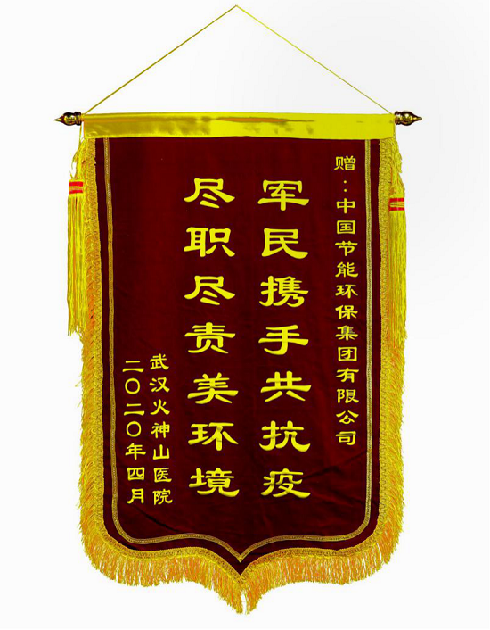 近日,中國節能收到來自武漢火神山醫院贈送的一面印有“軍民攜手共抗疫,盡職盡責美環境”贈語的錦旗。在疫情期間,中國節能承擔了及時清運和處理火神山醫院醫療廢物的緊急任務,為保障醫院安全正常運行作出重要貢獻。該錦旗凝聚著院方對中國節能付出和努力的感謝,更凝聚著在以習近平同志為核心的黨中央堅強領導下軍民攜手、團結一心、共抗疫情的深厚情誼。